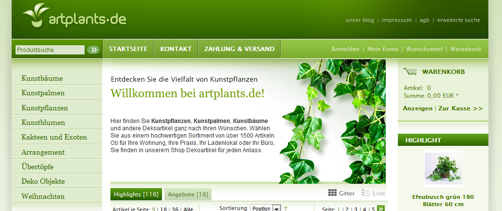 Im Artplants.de Shop findet ihr neben zahlreichen Kunstpflanzen verschiedenster Arten auch Deko-Utensilien, Übertöpfe und mehr. Ebenso sind spezielle Arrangements vorhanden wie Efeu-Ampeln. Besonders interessant finde ich das Arrangement Casino Royale.