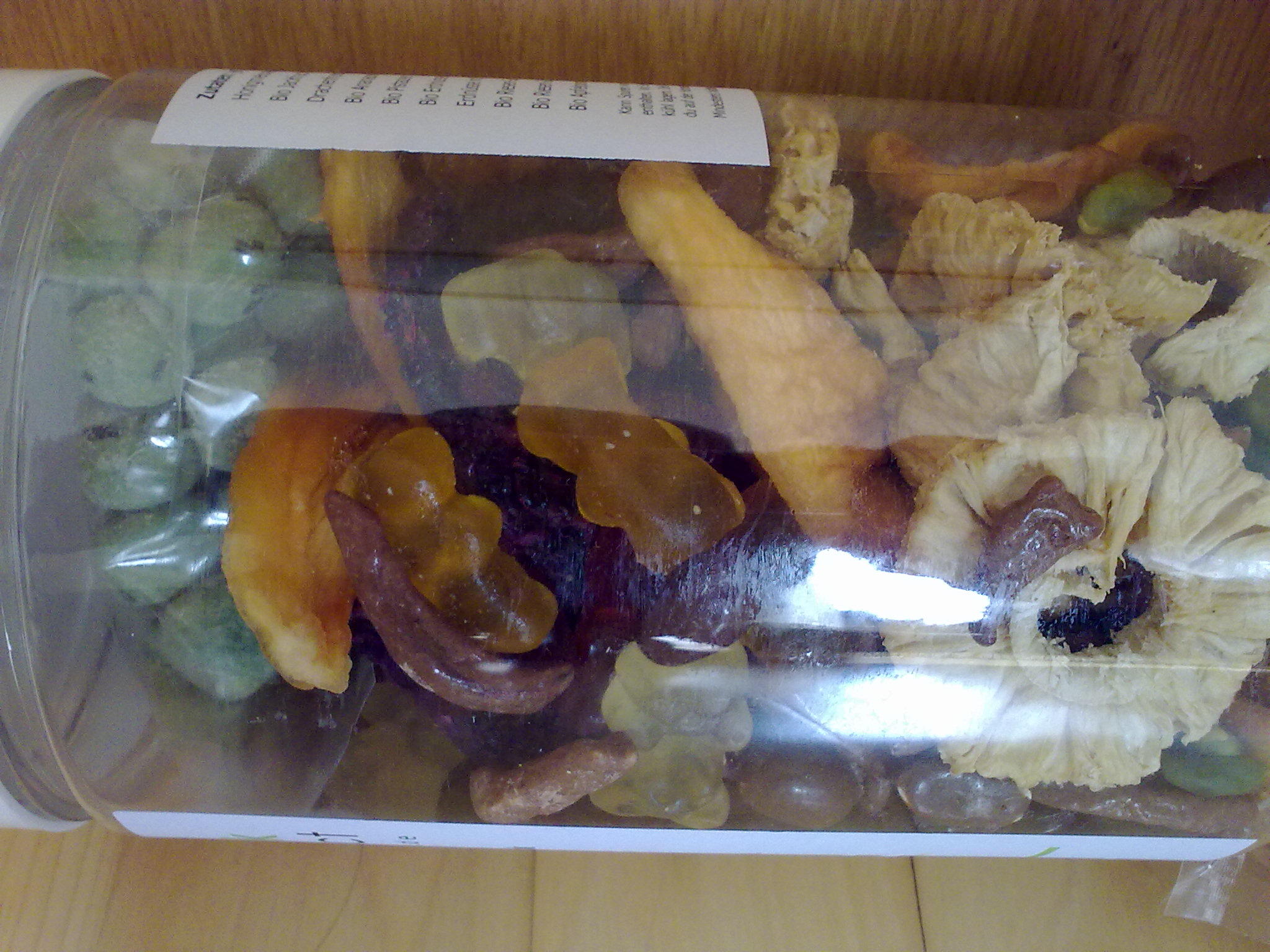 Am meisten hatte ich mich auf die Melonenstreifen, die Apfelringe und die Bananenchips gefreut, viele von den anderen Sachen waren einfach als „Experiment“ bestellt. Das Problem an der Sache war nun, dass eine Frucht in der SnackTube, es war wohl die Jackfrucht, einen derartigen Geruch in der Verpackung verbreitet hat, dass alles nach diesem schmeckte – und zwar richtig unangenehm, zumindest nach dem Geschmack meiner Mittester und mir. Die Gummibärchen, die relativ geschmacklose Melone, die Ananasringe und einge andere Zutaten in dieser Box hatten den Geschmack angenommen und waren mehr oder weniger ungenießbar… Hätte ich die Jackfrucht allerdings nicht bestellt, dann wären diese Sachen bestimmt lecker gewesen.  Ein Hinweis auf der Homepage wäre eventuell angemessen, damit andere Unwissende nicht auch diesen Fehler begehen.