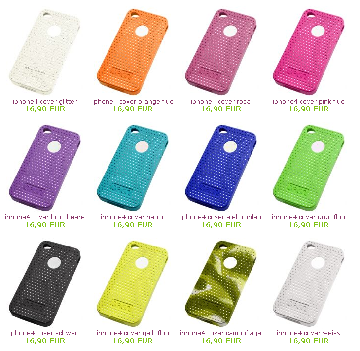 Das Cover für das iPhone 4 gibt es in sämtlichen Farben: