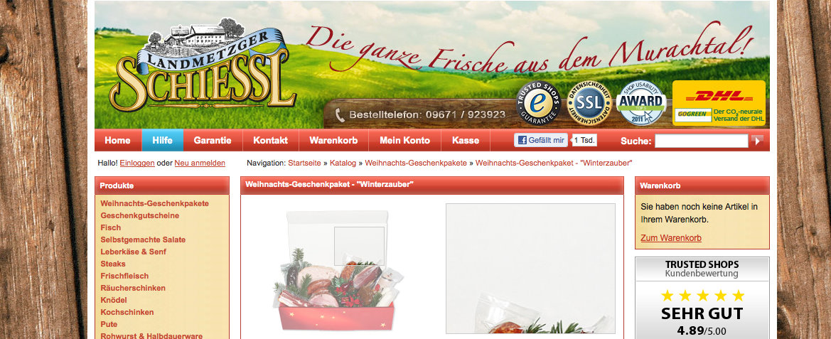 Von der Qualität her kann die Wurst von Schiessl überzeugen und auch das Fleisch ist noch wirklich Fleisch. Vorallem der Geschmack ist klasse – anders als die abgepackte Wurst vom Discounter eben wirklich frisch produziert und ohne haltbarmachende Konsevierungsstoffe und Geschmacksverstärker. Doch diese Waren bekomme ich bei gleicher Qualität auch in der Nachbarschaft – dort sogar schneller und ohne Versand.