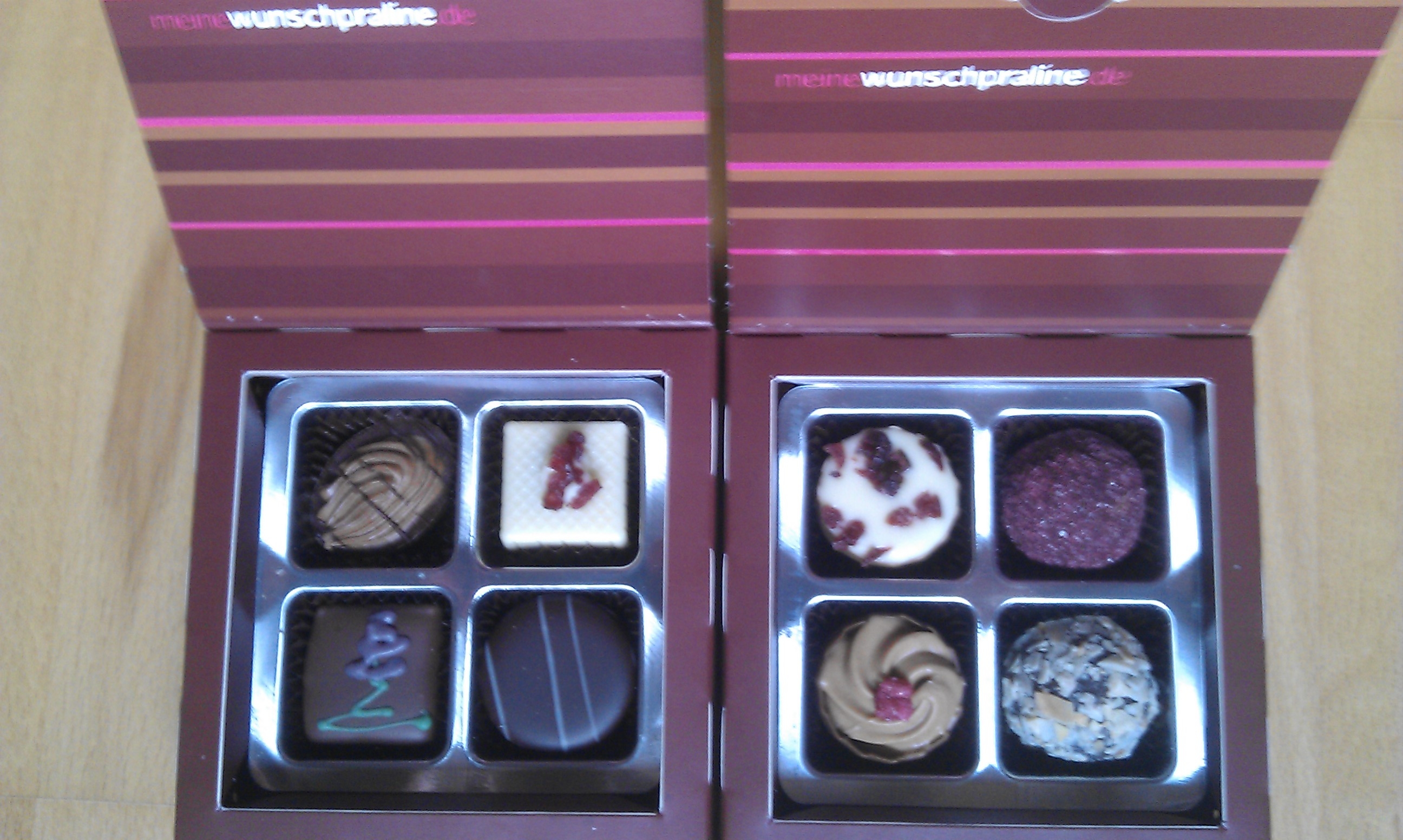denen du dir gerne nach deinem Gusto eine Packung (mit entweder 4, 8 oder 12 Pralinen) befüllen lassen kannst.