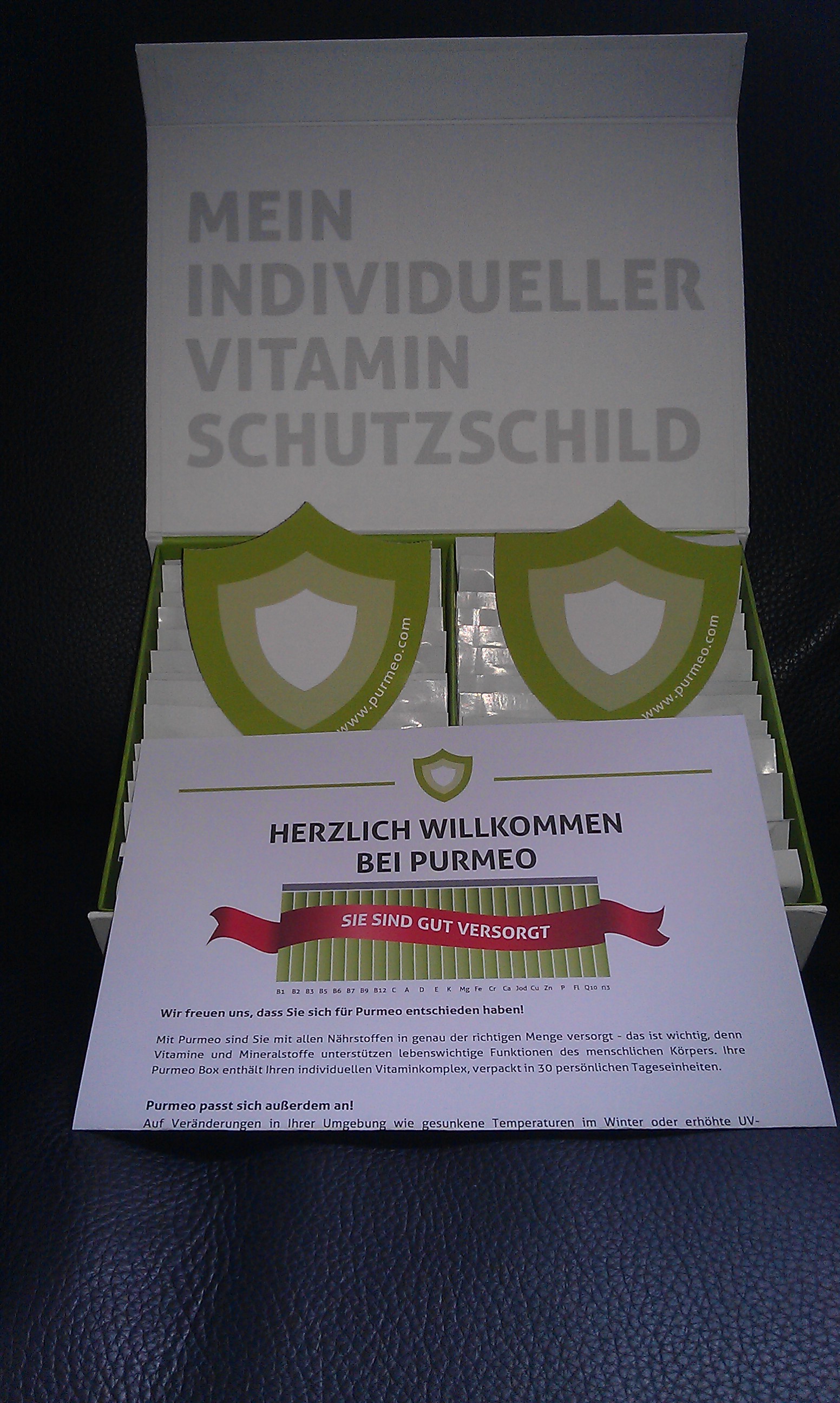 Von Purmeo habe ich eine Testbox mit „30 Tageseinheiten voller Energie“ bekommen. Diese Vitamin-Mineralien-Box durfte ich also testen und möchte euch von meiner Erfahrung berichten.