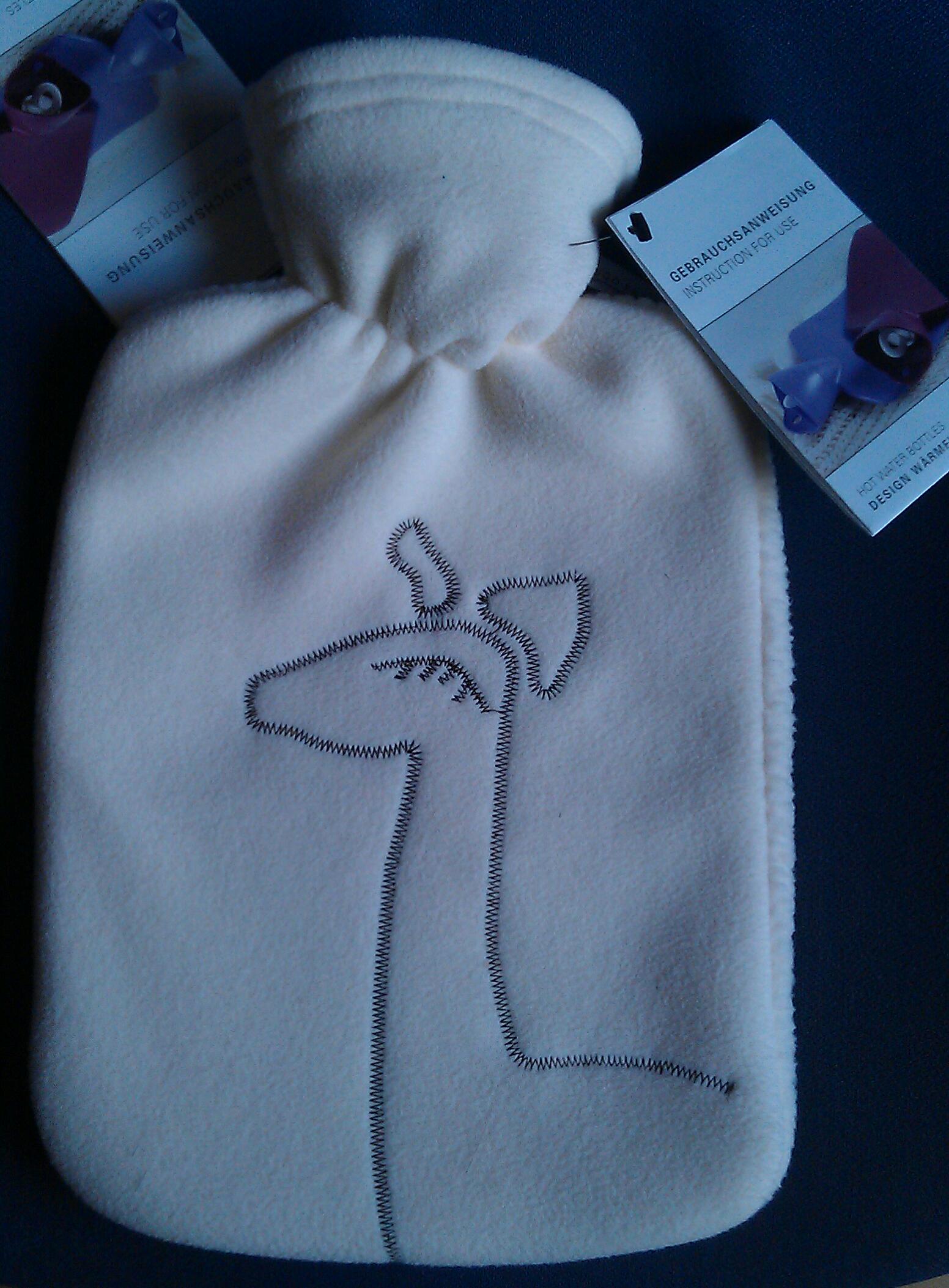 Meine Wahl fiel auf die Klassik-Wärmflasche mit einer Giraffen-Applikation. Die Wärmflasche hat einen Doublefleece-Überzug und ist sehr weich und kuschlig.