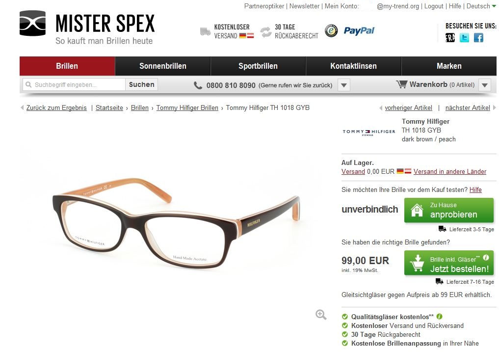 Es gibt eine riesige Auswahl an Marken-Brillen. Neben Ray-Ban, Lacoste , Tommy Hilfiger, D&G, Prada, Esprit, Police und Co. bietet Mister Spex außerdem auch eine Eigenmarke zu ziemlich günstigen Konditionen an.