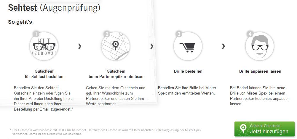 Du kennst deine Werte nicht? Kein Problem: Einfach einen Sehtest in deiner Nähe machen. Mister Spex hat Deutschlandweit ein Netzwerk an Partneroptikern bei denen ihr kostenfrei den Sehtest machen könnt – es fallen 9,90 EUR für den Sehtest an, die ihr aber mit der Verglasung wieder gutgeschrieben bekommt.
