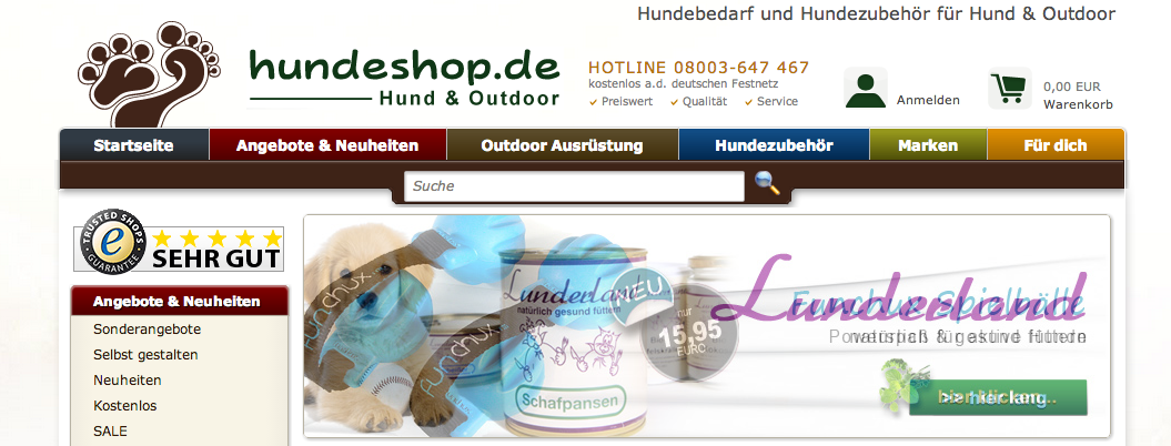 Tierfutter, -zubehör und Co bestelle ich liebend gerne online. Hier habe ich nicht den Stress, dass mir ein Verkäufer im NAcken sitzt und mir dieses oder jenes Produkt andrehen möchte. Auch ist die Auswahl meist viel größer als in einem kleinen Ladengeschäft. Aus diesem Grund habe ich den Onlineshop hundeshop.de einmal ausprobiert. Dort gibt es zahlreiche Produkte von verschiedensten Herstellern rund um den Hund. Vom Futter über Hundekörbchen bis hin zu Pflegeprodukte gegen Milben und Co.