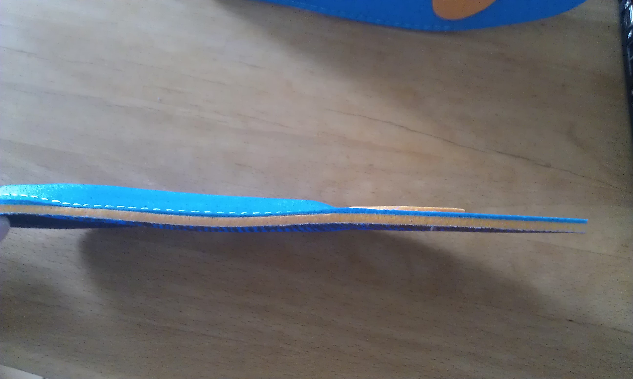 Ich werde hier keine Bewertung vornehmen, da ich die Sohle nicht testen konnte, weil sie von der Breite her in keinen meiner Schuhe gepasst hat. Die Spitze (also der Zehenbereich) ist nicht vernäht, d.h. man kann sie anscheinend zurechtschneiden, doch an den Seiten habe ich mir das auch aufgrund des Materials nicht getraut. Die Sohle wirkt aber beim Draufstehen auf jeden Fall weich, flexibel und angenehm, das kann ich auch ohne wirklichen Test sagen. Und auch die Vorführung der Dämpfung (ähnlich dem Eiertest) auf der Messe war beeindruckend.