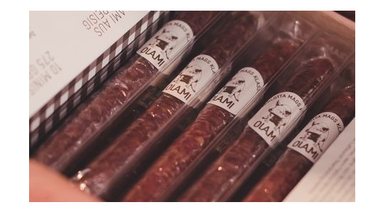 Zusätzlich lässt sich OLAMI – die übrigens in einer schicken Holzkiste geliefert werden – auch individualisieren. Es besteht so die Möglichkeit, die Banderole der Salami mit einem eigenen Slogan zu beschriften. Ideal also auch als Geschenk geeignet.