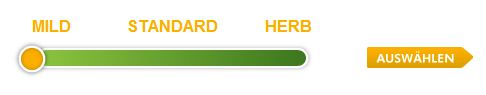 Schritt 2: Soll dein Bier herb und bitter oder doch eher mild und ausgeglichen sein? Du kannst hier die Intensität des Hopfens bestimmen. (Mild, Standard, Herb)