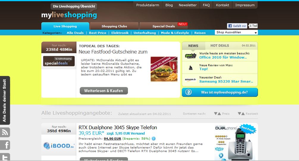 Was ist Liveshopping überhaupt? Liveshopping ist ein aus den USA Stammender Trend. Beim Liveshopping wird lediglich 1 Produkt für einen bestimmten Zeitraum (meist 24h) und dafür zu einem ziemlich günstigen Preis angeboten.